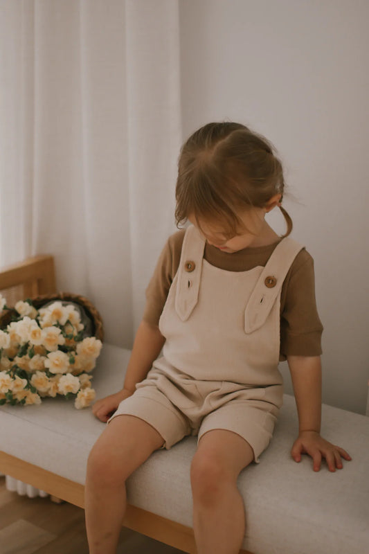 Salopette évolutive courte crème en bambou côtelé