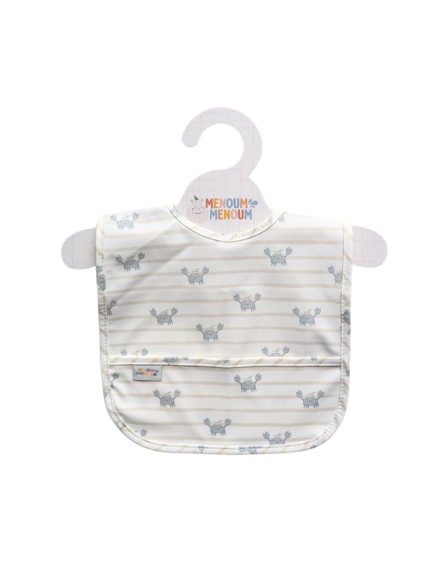 Menoum menoum présente ce mignon bavoir pour tout-petit ! Coloré et très pratique, il sera apprécié pour l'heure des repas !
