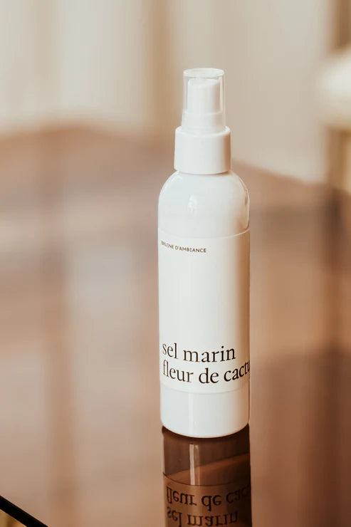 La bruine d'ambiance Sel marin et fleur de cactus vous invite à un voyage olfactif vers les rives ensoleillées, où l'air salin se mêle aux doux effluves des fleurs de cactus.