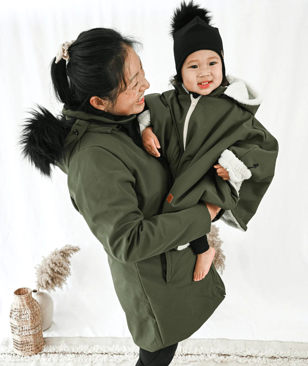 - Peut être porté par-dessus un porte-bébé. Le produit est vendu avec des petites sangles qui servent à accrocher la housse sur les bretelles d'un porte-bébé.