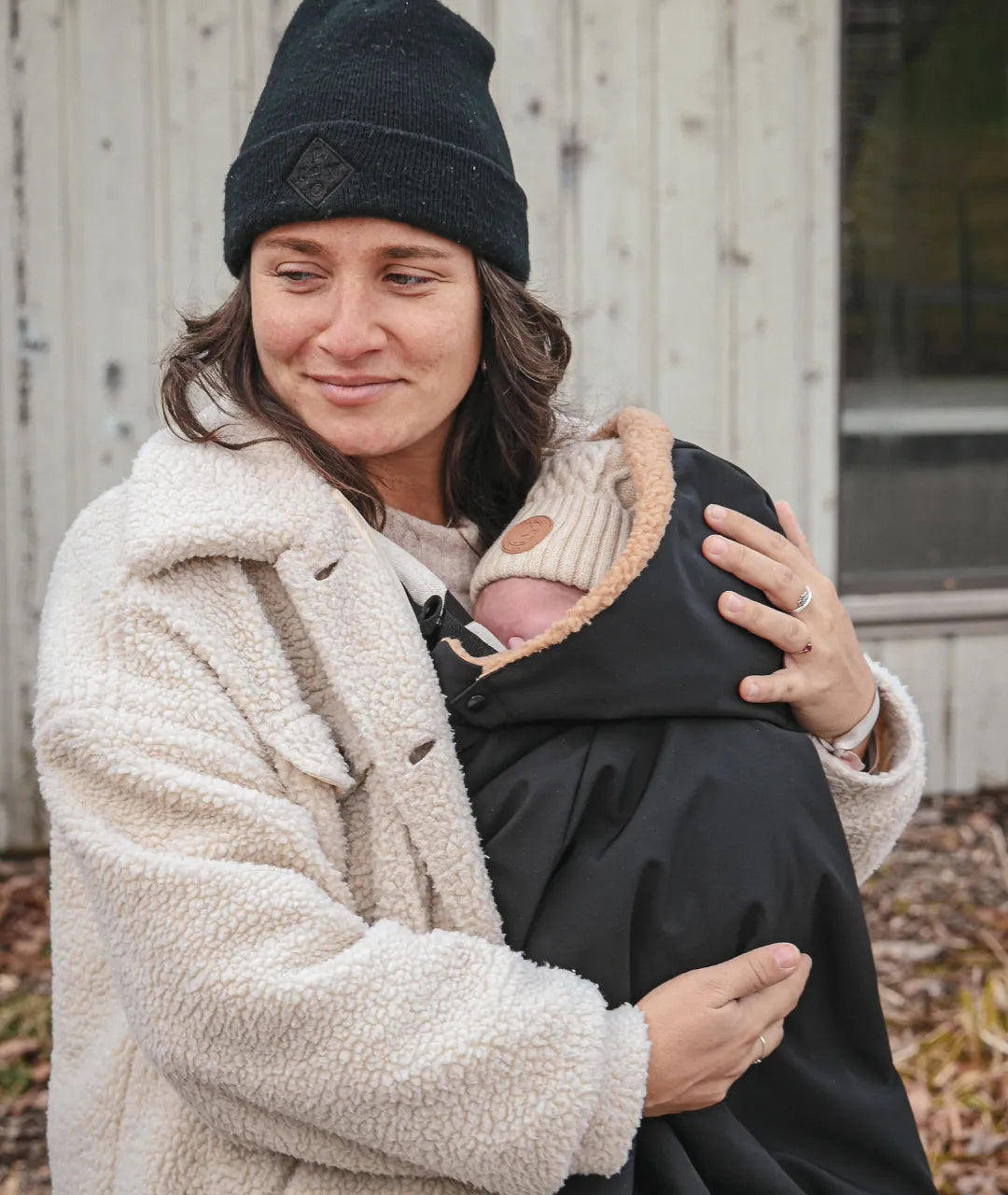 La housse est imperméable et conçue pour aller jusqu'à -15◦c, voir plus selon les vêtements de bébé sous la Housse Poncho. Elle est fabriqué avec un tissu Softshell ainsi qu'un Sherpa, ce qui la rend imperméable et très chaude.