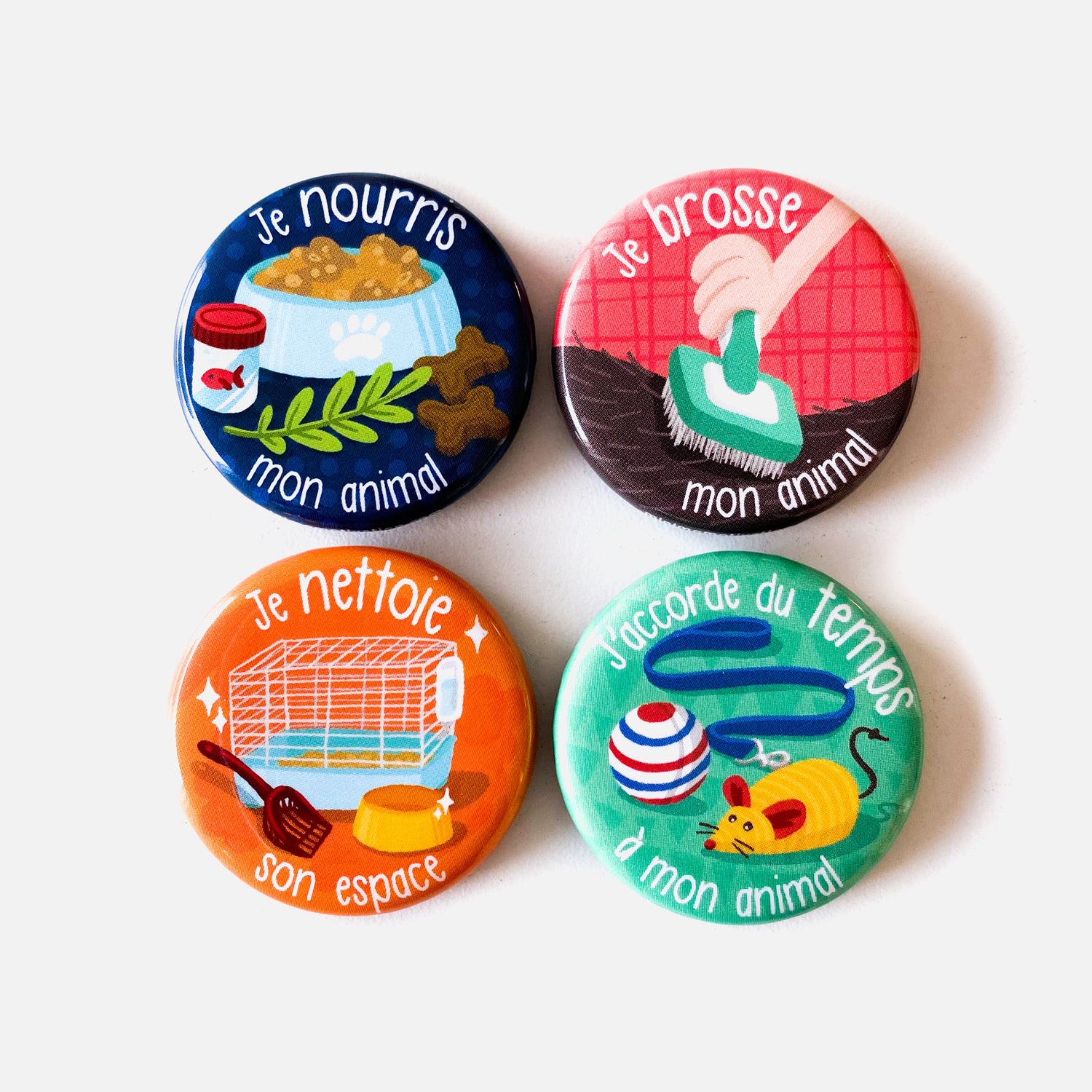 Les 4 aimants Je prends soin de mon animal vont t’aider à travailler la bonne habitude avec ton mini que ton animal n’est ni un jouet, ni un meuble. Et que lui aussi, a besoin d’attention et de soins.