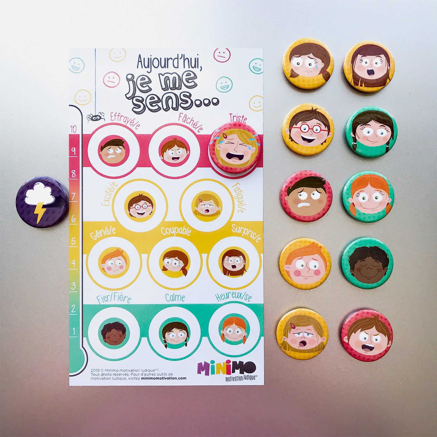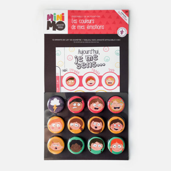 - 12 aimants ronds, illustrés avec différentes émotions simples