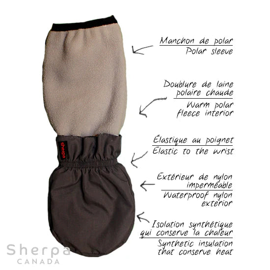 L'extérieur est fabriqué de nylon imperméable et l'intérieur est fait de laine polaire ce qui rend la mitaine Moki plus chaude et douillette.
