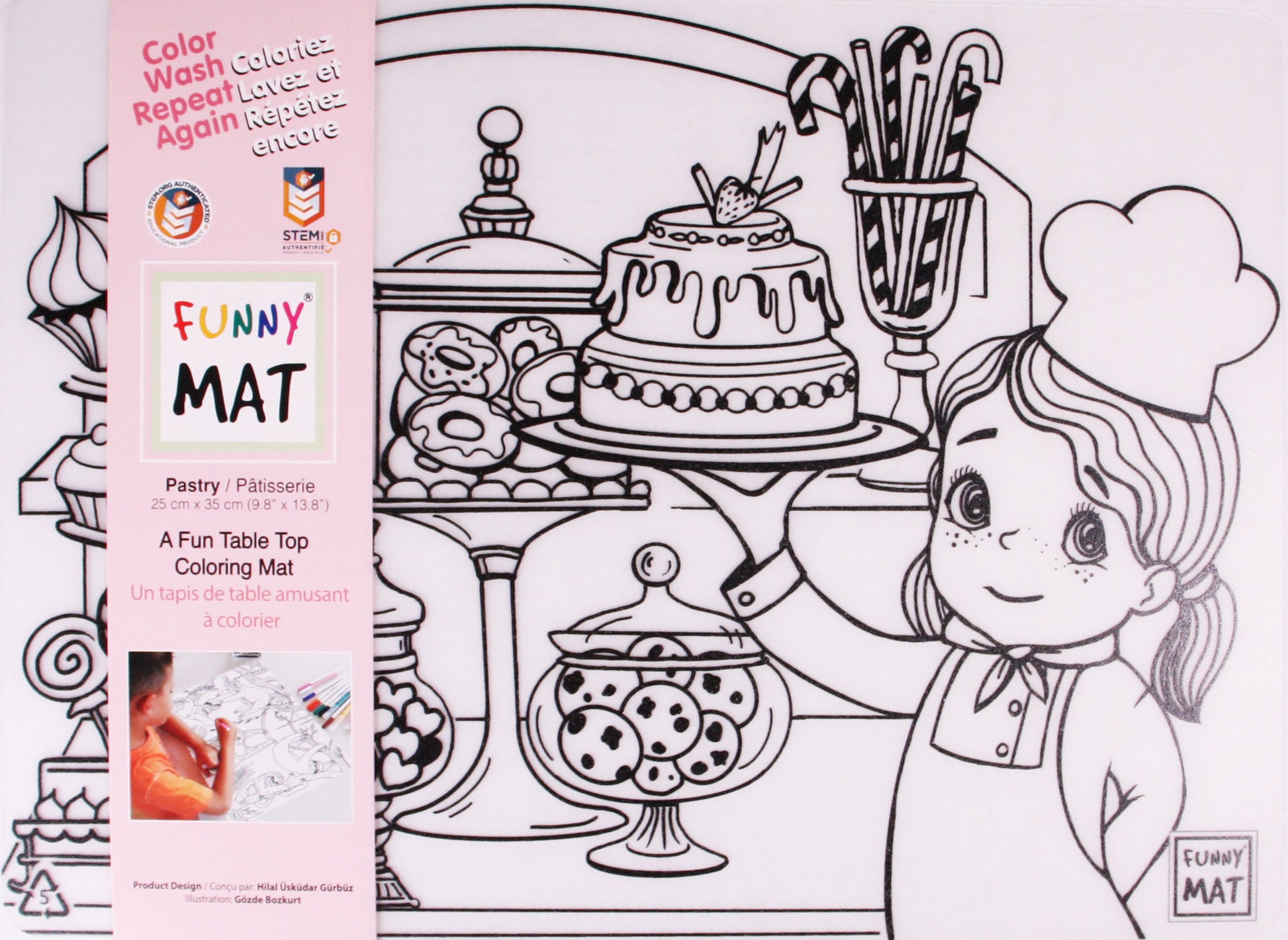 Le napperon peut être colorié avec des crayons à colorier lavables. En essuyant avec un linge humide ou en passant le napperon sous l'eau, les couleurs s'effaceront et le napperon pourra à nouveau être colorié.