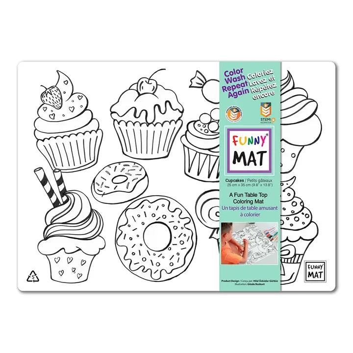 Le napperon peut être colorié avec des crayons à colorier lavables. En essuyant avec un linge humide ou en passant le napperon sous l'eau, les couleurs s'effaceront et le napperon pourra à nouveau être colorié.