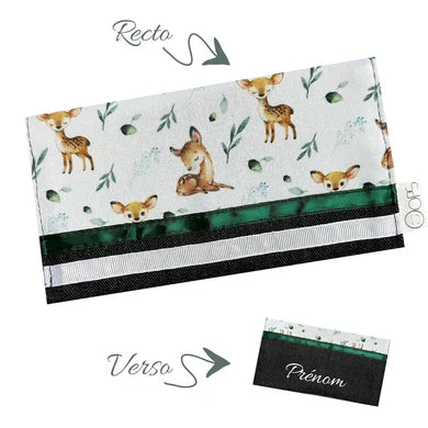 Protège carnet de santé pouvant contenir 1 ou 2 carnets, chacun ayant sa propre section individuelle (3 pochettes de chaque côté).