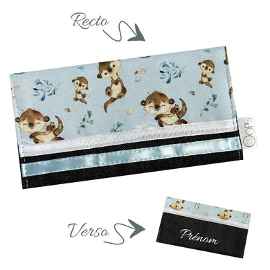Protège carnet de santé pouvant contenir 1 ou 2 carnets, chacun ayant sa propre section individuelle (3 pochettes de chaque côté).