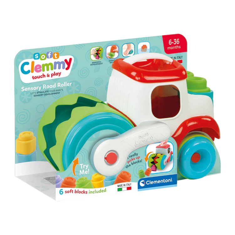Ce véhicule dynamique est conçu pour captiver les jeunes enfants, grâce à ses textures attrayantes et ses inserts souples qui stimulent l'exploration tactile. Le rouleau interactif permet aux enfants d'attraper des cubes Clemmy colorés, ce qui rend le jeu plus captivant tout en développant la coordination œil-main et la motricité fine.