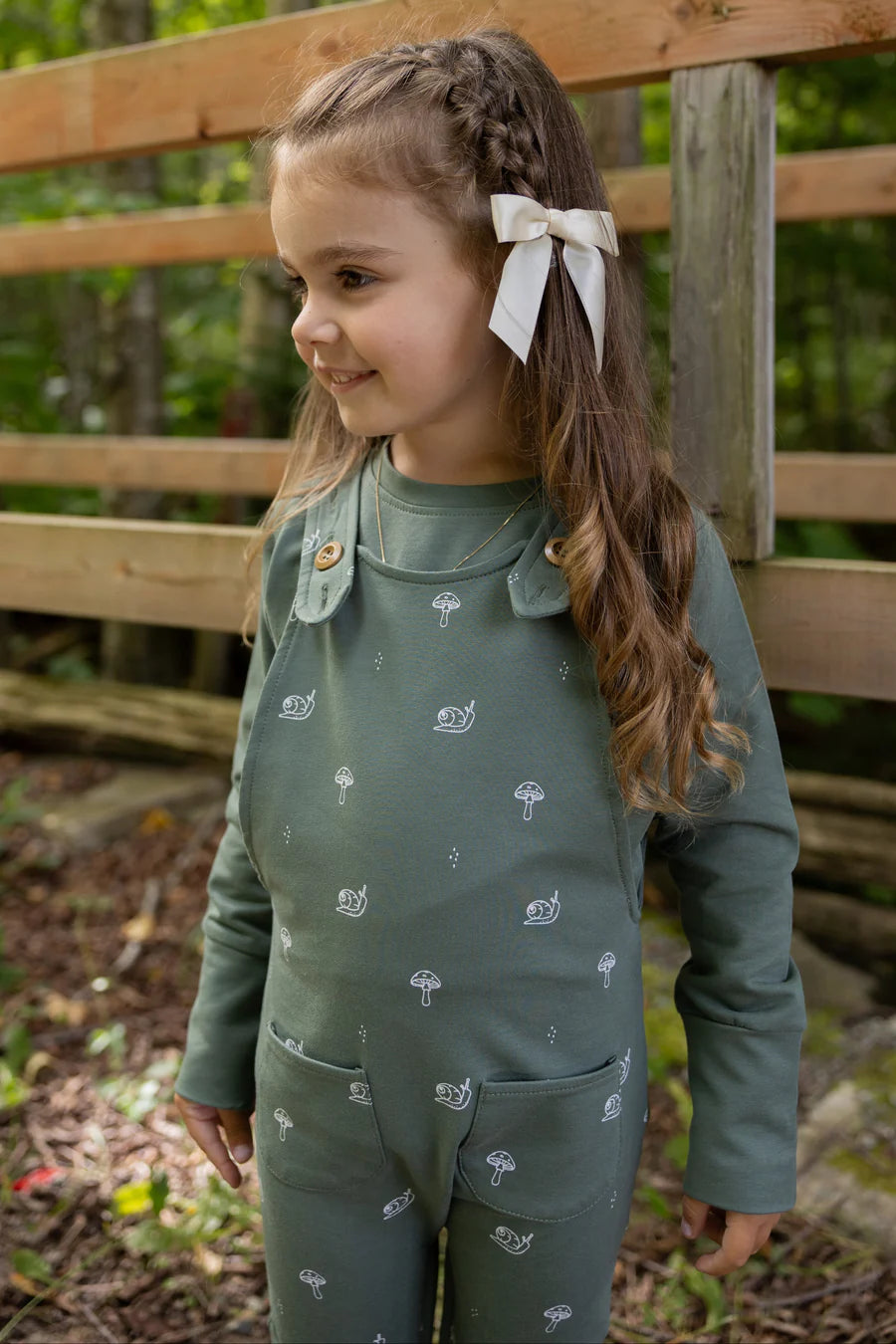 Salopette évolutive vert eucalyptus motif escargots