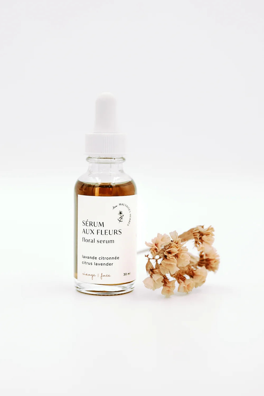 Notre sérum aux fleurs est apaisant et ravive le teint. Composé d'huile de chanvre biologique du Québec, d'extrait de fleur de sureau et d'un mélange d'huiles essentielles apaisantes, il convient à tous les types de peau.